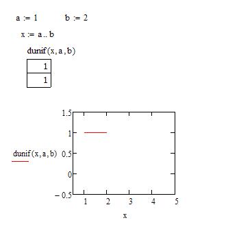 Для вычисления плотности распределения и функции распределения имеются встроенные функции: dunif(x, a, b) – оператор, вычисляющий плотность вероятности равномерного распределения; punif(x, a, b) – оператор, вычисляющий значение в точке x функции равномерного распределения.