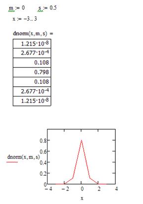 dnorm(x, m, s) – оператор, вычисляющий плотность вероятности для нормального распределения; pnorm(x, m, s) – оператор, вычисляющий значение в точке x функции нормального распределения.