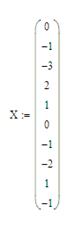 Для сортировки значений в порядке возрастания в Mathcad используется функция sort(). Пусть столбец X1 – столбец значений матрицы X, расположенных в указанном порядке. На рабочем листе набираем:
