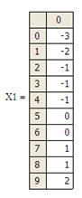 Таким образом, вариационным рядом этой выборки служит последовательность: -3, -2, -1, -1, -1, 0, 0, 1, 1, 2. При этом можно определить наименьший и наибольший член матрицы. Для этого на рабочем листе набираем min(X1) или max(X1), ставим знак «=» и получаем: