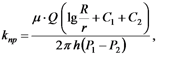 В реальных условиях при центростремительном движении геофлюидов к скважине проницаемость рассчитывают по формуле: