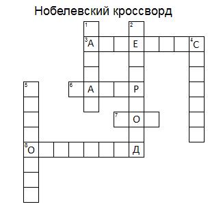 В кроссворде зашифрованы фамилии восьми лауреатов Нобелевской премии по химии. Ниже представлены описания заслуг, за которые им была присуждена Нобелевская премия. Определите фамилии учёных и ответьте на дополнительные вопросы. По горизонтали: 3. Присуждена премия как факт признания особого значения его теории электролитической диссоциации для развития химии. Дополнительные вопросы: а) Напишите уравнение электролитической диссоциации фосфорноватистой кислоты, хлорита натрия. б) Насыщенные растворы, каких из перечисленных соединений будут хорошо проводить электрический ток: сульфат бария, перхлорат натрия? 6. За синтез аммиака из составляющих его элементов. (Когда он получал премию из рук короля Швеции, зал встал и начал свистеть.) Дополнительные вопросы: а) Напишите уравнение реакции, за которую этот великий учёный получил Нобелевскую премию. б) Предложите альтернативный способ синтеза аммиака из атмосферного азота, используя только неорганические реагенты. в) Как получить водород, необходимый для синтеза аммиака из элементов (учтите, что синтез крупнотоннажный, а реактивы должны быть легкодоступны)? г) За какие работы зал мог освистать этого талантливого учёного (подсказка: премия была присуждена в 1919 г.)? 7. За заслуги по введению и развитию методов высокого давления в химии, что представляет собой эпохальное событие в области химической технологии. Процесс, названный в честь учёных из пунктов 6 и 7, потребляет 1 % вырабатываемой в мире энергии и благодаря ему можно прокормить треть населения Земли. Дополнительные вопросы: а) Учёные, загаданные в пунктах 6 и 7, вели свои нобелевские работы в Германии. Почему для Германии были так важны работы по фиксированию атмосферного азота в начале прошлого века? б) Для чего сейчас фиксируют атмосферный азот? в) Этот учёный рассчитывал правильные условия взрыва угольных шахт. Для какой цели в Германии в начале прошлого века взрывали угольные шахты? 8. Знак признания проделанной им работы по катализу, а также за исследования основных принципов управления химическим равновесием и скоростью реакции. Широко известен закон разбавления, установленный данным учёным. Термин «моль» был предложен им в 1900 г. Дополнительные вопросы: а) Определите, как изменится степень диссоциации 0, 1 М уксусной кислоты, если её разбавить в два раза (K а = 1, 76 ∙ 10–5). б) Этот учёный внёс большой вклад в развитие теорий идеального газа и идеального раствора. Какое главное отличие идеального газа от идеального раствора?