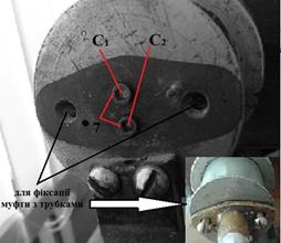 7.4.2.1. Перевірка координатних осей (виконується за допомогою лаборанта) Перевірка осі Для цього між стрижнями-виштовхувачами С1 та С2 й притискаючими обмежувачами 7 (див. рис.7.2) вставляється плитка Йогансона (див. рис. 7.5) товщиною 1 мм.