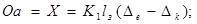 7.4.2.2. Визначення коефіцієнтів збільшення по осям Для визначення коефіцієнтів збільшення по осям диференційного оптичного дилатометра необхідно виконати низку вимірювань. Відносне розширення зразка Нехай початкові довжини зразка, еталона і кварца однакові: Збільшення по осі ОХ позначимо через К1, по осі OY через К2 і по осі OA через К3. Тоді переміщення світлової точки по осі ОХ, що відповідає однаковому розширенню зразка і еталона можна записати так: