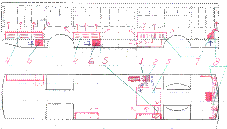 Работа вентиляции: в летнее время воздух из салона отсасывается вентилятором через заслонку в атмосферу (см. отопление). В результате в салоне образуется некоторое разряжение обеспечивающее приток воздуха через форточки, люки и двери. При скорости 15км/ч. Обеспечивается 70-80 кратный обмен воздуха за 1 час, или полный обмен за минуту. Зимний обмен воздуха, только при открывании дверей и кратность обмена снижается.