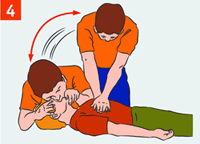 | Уложи пострадавшего животом на свое колено, дай воде стечь из дыхательных путей. Обеспечь проходимость верхних дыхательных путей. Очисти полость рта от посторонних предметов (слизь, рвотные массы и т.п.).