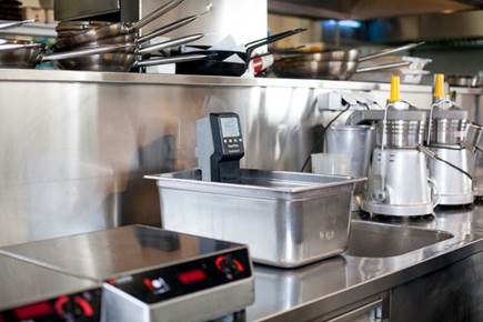 Для тепловой обработки в технологии sous vide наиболее принципиальными являются установка предельно точной температуры и ее поддержание на нужном уровне на протяжении всего процесса обработки (один два градуса разницы уже существенно скажутся на конечном результате), поэтому для решения этой задачи предполагается использовать специальное оборудование. Деликатная обработка может производиться тремя видами оборудования: 1) сочетание специальной ванны из нержавейки и погружного нагревающего термостата, обеспечивающего поддержание постоянной температуры; 2) водяная баня; 3) пароконвектомат, имеющий режим низкотемпературного пара; 4) термощуп, позволяющий точно контролировать температуру продукта. Водяная баня Если говорить о комбинированном решении «ванна плюс термостат», среди плюсов – большие размеры емкости и более низкая, по сравнению с пароконвектоматом, стоимость оборудования. На стороне пароконвектомата – несомненно большая универсальность. Еще уточним, что в продаже существуют и термостаты, которые умеют совмещать функции нагрева и охлаждения.