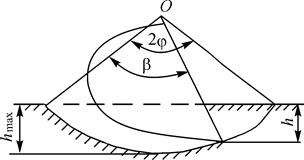 где h – глубина резания, м; R – радиус резания, м; j – половина полного угла поворота ковша в грунте, град; b – текущий угол поворота ковша, определяющий положение ковша относительно принятой системы отсчета, град. При копании поворотом ковша R = Rк, при копании поворотом рукояти с ковшом R = Rк + lр, где Rк – радиус ковша; lр – длина рукояти. Полагая, что весь разработанный грунт окажется в ковше: V = q, где q – вместимость ковша. Тогда угол поворота ковша j, необходимый для полного наполнения ковша определяется из формулы: