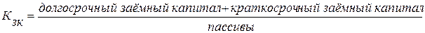 где стр.1300, стр.1100, - строки Бухгалтерского баланса (форма №1). Коэффициент соотношения собственных и заемных средств Коэффициент концентрации привлечённого капитала: