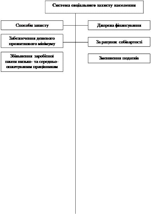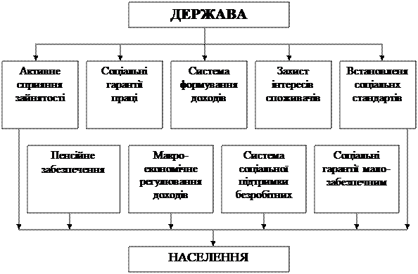 Рис. 1.4. Система соціального захисту населення в Україні Отже, державне соціальне забезпечення є складовою системи соціального захисту і виконує функцію нагромадження та розподілу коштів соціального захисту, призначених для соціальної допомоги, виплат по соціальному страхуванню тощо.