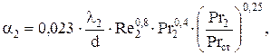 Определяли коэффициент теплоотдачи к воде a2, Вт/(м2× Кпо уравнению