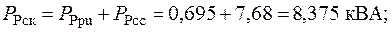 1. Рассчитываем полные мощности отдельных групп электроприемников по данным, полученным в Примере 1: ¾ для башенного крана