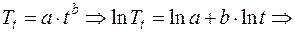Расчет средних значений для оценки параметров степенного тренда. Таблица 7