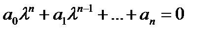 де Характеристичне рівняння, яке відповідає диференціальному рівнянню, являє собою, як відомо, алгебраїчне рівняння, степінь і коефіцієнти якого співпадають з порядком і коефіцієнтами лівої частини цього диференціального рівняння. Для диференціального рівняння, записаного у формі (2.1), характеристичне рівняння має вигляд