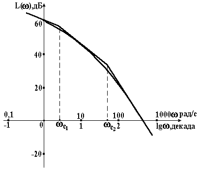 ординати якої вимірюють в логарифмічних одиницях – белах або децибелах (скорочено дБ). Бел – одиниця вимірювання відношення потужностей двох сигналів. Якщо потужність одного сигналу більша (менша) потужності другого сигналу в 10 разів, то ці потужності відрізняються на При побудові фазової частотної характеристики логарифмічний масштаб використовують тільки для осі абсцис. На рис. 2.5 показані логарифмічна амплітудна характеристика (товста лінія) і відповідна їй наближена характеристика у вигляді прямолінійних відрізків (тонка лінія). Частоти, що відповідають точкам стику відрізків, називають сполучними і позначають Правила і приклади побудови наближених логарифмічних характеристик конкретних елементів будуть дані в главі 4. За видом частотних характеристик всі елементи і системи діляться на дві групи: мінімально-фазові і немінімально-фазові. Мінімально-фазовими є елементи (системи), в яких всі полюси і нулі передавальної функції Мінімально-фазові елементи володіють цінною для практичних розрахунків властивістю: їх частотна передавальна функція повністю визначається однією з трьох складових: