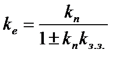 де знак “+” відповідає негативному зворотному зв’язку, а знак “–“ – позитивному. З виразу (2.77) випливає, що негативний зворотний зв’язок зменшує еквівалентний коефіцієнт, а позитивний - збільшує. Якщо при позитивному зворотному зв’язку добуток коефіцієнтів З’єднання з негативним зворотним зв’язком володіє позитивною (доброю) властивістю: при достатньо великому добутку Справді, при