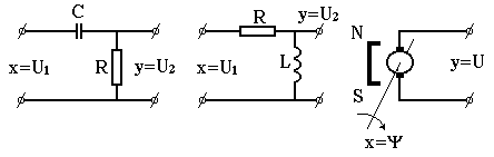 Таку ланку можна зобразити у вигляді послідовного або паралельного з’єднання безінерційної і інерційної ланок (рис. 3.13). Характеристики реальної диференціюючої ланки приведені на рисунку 3.14. Приклади реальних диференціюючих ланок приведені на рисунку 3.15. Диференціюючі ланки в статичному режимі не передають сигналу на вихід, вони добре пропускають високочастотні сигнали і погано-низькочастотні. Вони вносять додатковий фазовий зсув.