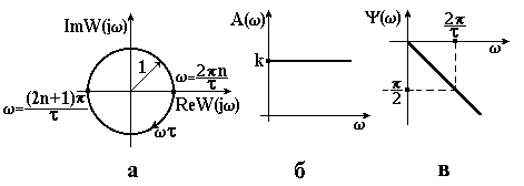 2. За властивостями АЧХ ланка запізнення еквівалентна безінерційній: пропускає високочастотні і низькочастотні сигнали з однаковим відношенням амплітуд (рівним одиниці). 3. За властивостями ФЧХ вона еквівалентна інерційним ланкам: створює від’ємний зсув (пропорційний запізненню t і частоті w).
