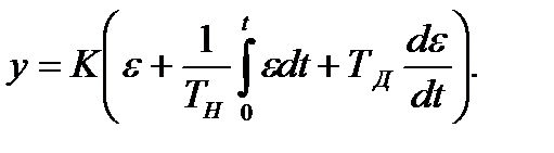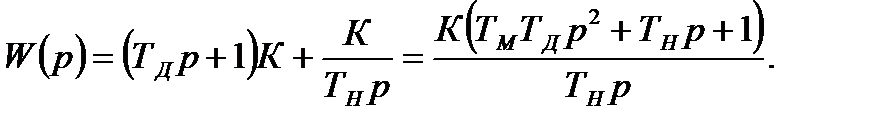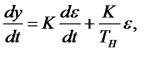 Коефіцієнт підсилення К і постійна часу диференціювання Тд є параметрами настройки ПІ-регулятора. Передавальна функція ПД-регулятора має вигляд