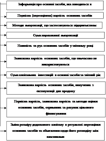 Порядок відображення інформації про основні засоби у примітках до фінансової звітності зображено на рисунку 4.6.