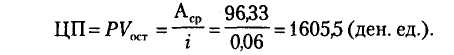 Оценка рассматриваемого бизнеса методом капитализации постоянного дохода (на уровне среднемесячного денежного потока АсР = 96, 33 ден. ед.), если принять, что этот доход можно получать неопределенно длительный период (гораздо больше 15 месяцев), окажется равной: