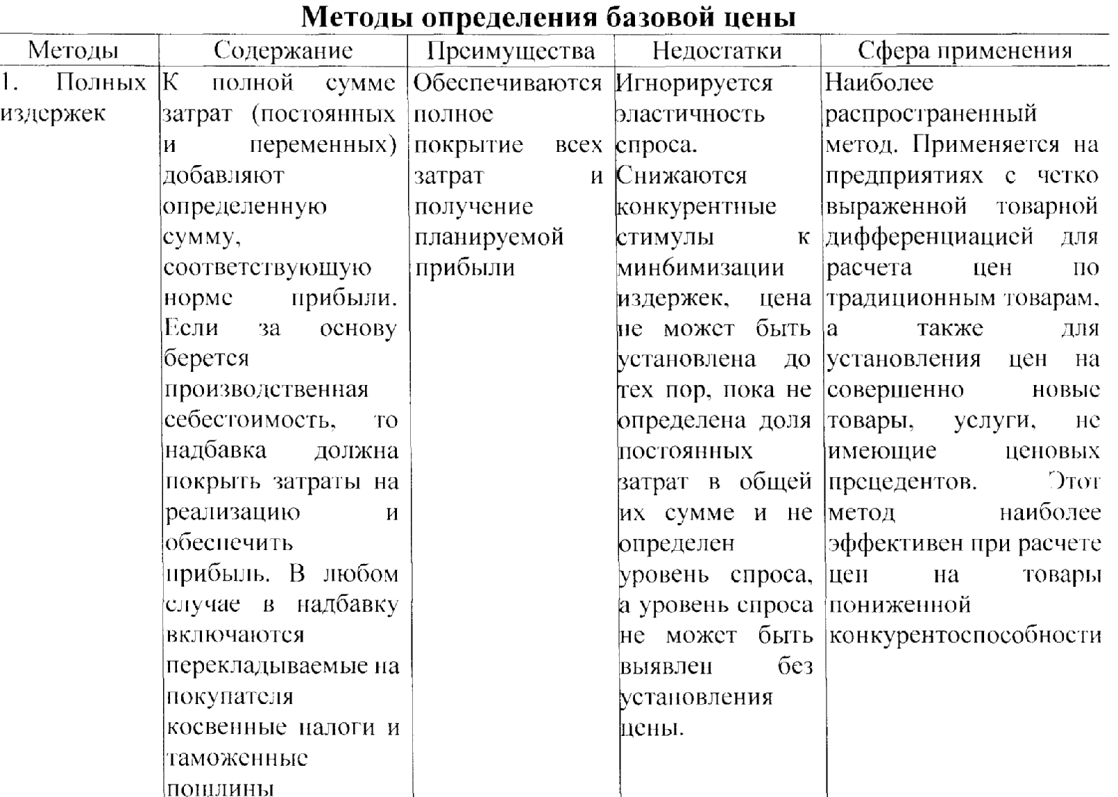 Существуют пять основных методов определения базовой цены, которые можно использовать по отдельности или в различных комбинациях: метод полных издержек;