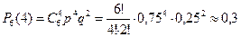 Сложные события вида (*) попарно несовместны. Мы хотим, чтобы наступило хотя бы одно из них, т.е. нужно найти вероятность суммы несовместных событий. Вероятность каждого события равна p2q3, их число