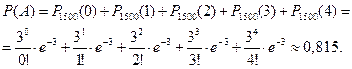 Формулу Пуассона обычно используют в случае, когда λ Пример 1. Завод отправляет в некоторый город 1500 автомобилей. Вероятность того, что в пути машина может получить повреждение, равна 0, 002. Найти вероятность того, что в пути будет повреждено не более 4-х автомобилей. Решение. Событие