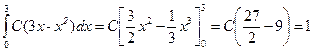 Поскольку плотность вероятности отлична от нуля только на отрезке [0; 3], то интеграл по всему промежутку