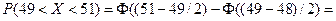 Пример 4. Магазин продает мужские костюмы. По данным статистики известно, что распределение по размерам является нормальным с математическим ожиданием 48 и средним квадратическим отклонением 2. Определить процент спроса на 50-й размер при условии разброса значений этой величины в интервале (49; 51). Решение. По условию