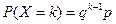 Геометрическое распределение встречается, когда производится ряд независимых попыток добиться какого-то результата, при каждой попытке результат достигается с вероятностью Случайная величина Ряд распределения выглядит следующим образом: