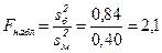Пусть генеральные совокупности Гипотеза Гипотеза В качестве критерия проверки нулевой гипотезы о равенстве генеральных дисперсий используем случайную величину Величина Из таблиц (см. Приложение 4) находим