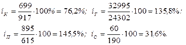 Экспортные поставки камбалы и сайры в текущем периоде по сравнению с базисным снизились на 23, 8% и 68, 4% соответственно, а трески и пикши – увеличились на 35, 8% и 45, 5% соответственно. Используя сводные индексы физического объема и цен Ласпейреса, определим, что в большей степени повлияло на динамику экспорта: изменение физического объема поставок или изменение цены на рыбу. Индекс физического объема Ласпейреса: