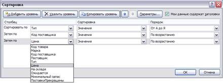 Рис. 4. 3. Диалоговое окно Параметры сортировки Примечание 3. После добавления (или изменения) строк таблицы потребуется повторная сортировка. Для этого выберите любую ячейку таблицы и осуществите выбор команды сортировки (рис. 4.1). Затем выделите пункт меню Применить повторно.