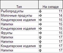 а б Рис. 5. 28. Результат условного форматирования интервала значений с использованием набора значков без сортировки (а) и с сортировкой (б) - Выполните сортировку отфильтрованных данных по полю «На складе» (рис. 5.28.б). Не правда ли интересные изменения. Интерпретацией результата займитесь сами. Можете попробовать и другие варианты значков Выведите коды и марки товаров, которые нужно заказать, то есть, на складе их меньше минимального запаса