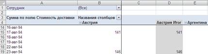 Рис. 7. 8. Фрагмент сводной таблицы для задания 2
