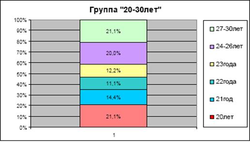 Рис. 2.1.5 Распределение покупателей в возрасте 20-30 лет