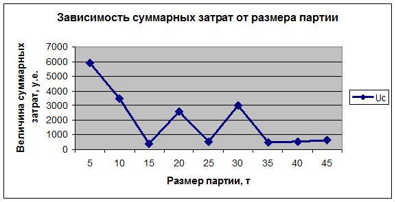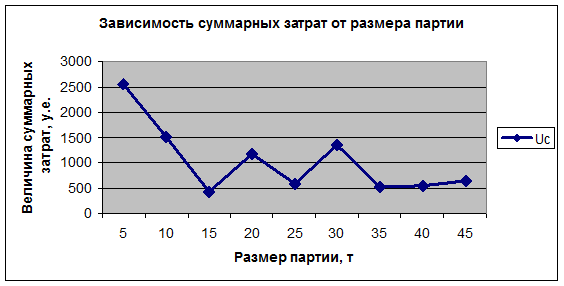 На рис.7.2 приведен график, показывающий изменение суммарных затратUc, в зависимости от величины доставляемой партии груза g.