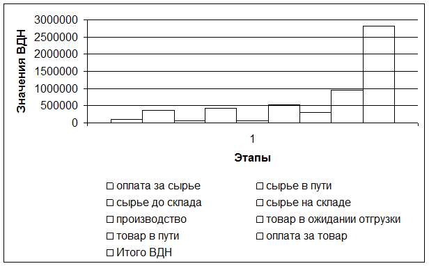 На рис.10.2 приведена гистограмма, в которой показаны величины суммарных ВДН по каждому этапу и итоговый ВДН.