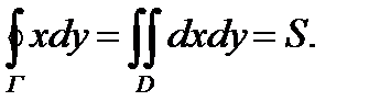В п.2.5.было установлено, что работа силового поля при перемещении материальной точки вдоль кривой Г выражается криволинейным интегралом второго рода по этой кривой. Применение криволинейного интеграла второго рода к решению физических задач будет изложено в теории поля. Покажем, что криволинейный интеграл может быть использован для вычисления площади плоской фигуры. Пусть D -некоторая область (правильная) с границей L и S - площадь этой области. Рассмотрим криволинейный интеграл