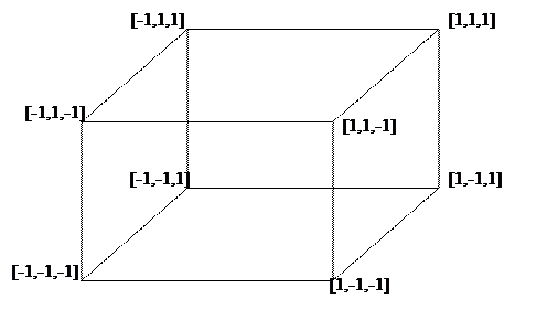 Во всех предыдущих примерах для задания вершин мы использовали версию команды glvertex с указанием двух координат вершин. Третья координата, по оси Z, устанавливалась нулевой. Трехмерное пространство ограничено кубом с координатами точек вершин по диагоналям (-1, -1, -1) и (1, 1, 1) (рис. 1).