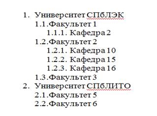 Фрагмент многоуровневого списка