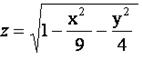 Пусть необходимо построить верхнюю часть эллипсоида, лежащую в диапазонах: х Î [–3; 3], у Î [–2; 2] с шагом D=0, 5 для обеих переменных. Решение данной задачи включает следующие этапы. 1.1.Вначале необходимо разрешить уравнение относительно переменной z: