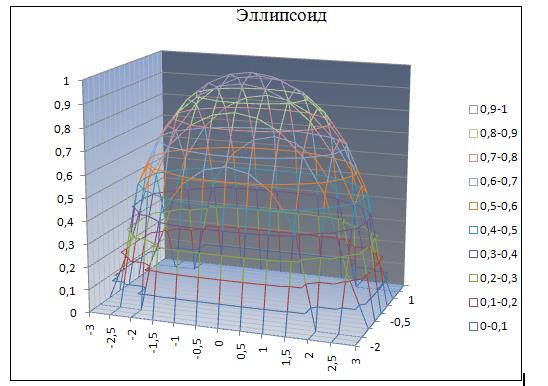 Организационно – методические указания В качестве примера рассмотрим построение поверхностей второго порядка таких как: эллипсоид, гиперболоид, параболоид и т.п. 1.Рассмотрим построение эллипсоида в Excel в соответствии с уравнением: