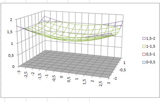 Тема: Вычисление сложных функций в Excel Цель занятия: получить практические навыки вычисления сложных функций от двух переменных z = f(x, у) и построения их графиков в Excel. Отрабатываемые вопросы. 1.Создание формул для вычисления функций от двух переменных. 2.Построение графиков типа поверхностей в трехмерном пространстве.