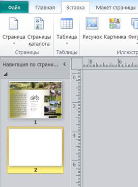 Рисунок 22. Область Навигация по странице. Далее выполняем аналогичные действия по созданию страницы без полей с разделением на 3 части (как сделать см. выше) (рис. 23). После этого выполняем действия по определению цветовой гаммы фона и вставки изображений на каждую из трех частей буклета (рис. 24).