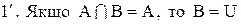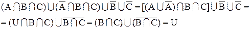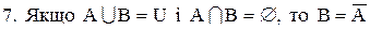 Нехай Тобто х належить як до першої частини рівності 3, так і до другої, що й доводить її. Рівності 1 та Для довільних підмножин А і В універсальної множини U, крім вищезазначених рівностей, справедливі також рівності: