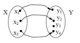 Рисунок 1.7. Відображення множини Х у множину Y Означення. Якщо кожному елементу Позначення: f: X→ Y, f – символ самого відображення. Означення. Якщо при відображенні f кожний елемент множини Y є образом хоча б одного елементу з множини Х, то f називають сюр’єнктивною функцією або сюр’єнцією (рис. 1.8).