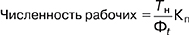 Данные о времени трудового процесса позволяют рассчитать численность рабочих, количество которых определяется непосредственно его трудоемкостью. Для расчета численности рабочих используют следующую типовую зависимость: