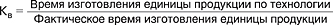 где n — количество номенклатурных позиций изделий в производственной программе; Nі — количество изделий i -й номенклатурной позиции; Ті — время выполнения процесса (части процесса) по изготовлению изделия i -й номенклатурной позиции; Т н.пр і — время, необходимое для изменения величины незавершенного производства в соответствии с производственным циклом изделий i -й номенклатурной позиции; Kв — коэффициент выполнения норм времени (в зарубежной литературе — уровень производительности, уровень использования времени), который, в свою очередь, находят по формуле: